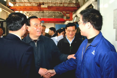 呂省長在精機公司加工車間時,與精機公司經(jīng)理潘順昌、副經(jīng)理杜建勝親切握手并交談,當呂省長得知他們現(xiàn)是該公司的管理人員,并已在企業(yè)工作幾十年,欣喜地對周圍人員說,看上去那么年輕,卻有豐富的實踐經(jīng)驗,這是企業(yè)的寶貴財富。呂省長感慨地說,杭機集團發(fā)展很快,原來廠區(qū)在環(huán)城東路時,就有近二千名員工,而現(xiàn)在人員減少,經(jīng)濟效益卻明顯提高,變化真大。呂省長指出,要充分認識加快發(fā)展裝備制造業(yè)的重要性和緊迫性,進一步加快發(fā)展裝備制造業(yè),推動產(chǎn)業(yè)結構優(yōu)化升級和經(jīng)濟增長方式轉變。