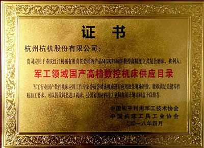 軍工行業(yè)國(guó)產(chǎn)數(shù)控機(jī)床應(yīng)用工作專家委員會(huì)嚴(yán)格篩選并通過(guò)在應(yīng)用現(xiàn)場(chǎng)效果評(píng)價(jià),最終確定我公司開(kāi)發(fā)的MGKF600/8數(shù)控高精度立式復(fù)合磨床列入了軍工領(lǐng)域國(guó)產(chǎn)高檔數(shù)控機(jī)床供應(yīng)目錄,杭機(jī)股份將作為軍工采購(gòu)國(guó)產(chǎn)機(jī)床的重點(diǎn)推薦企業(yè)。