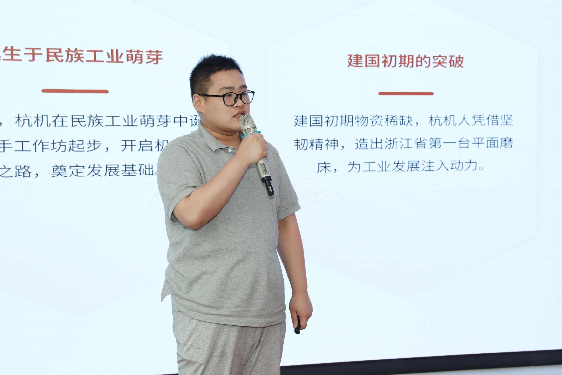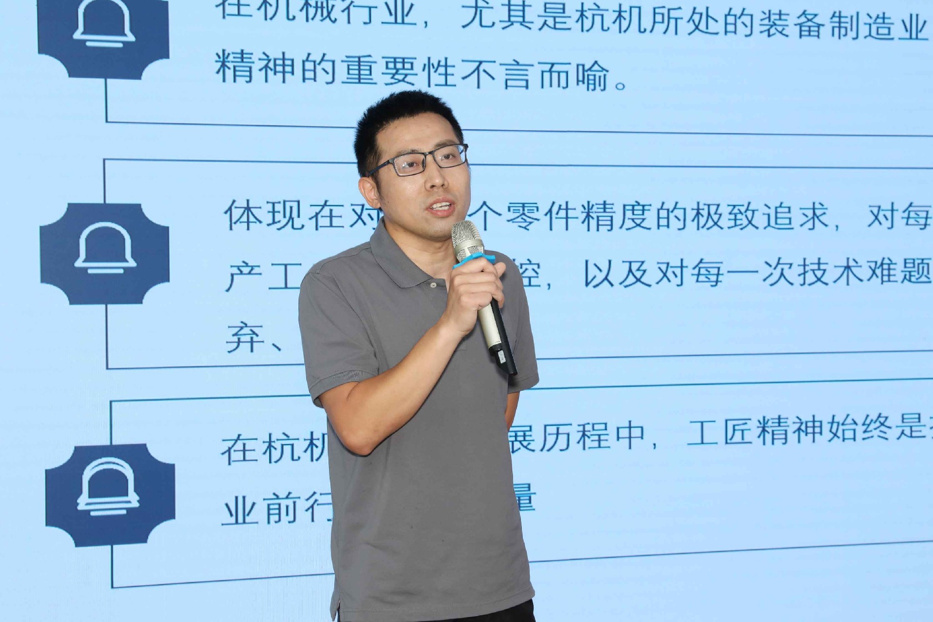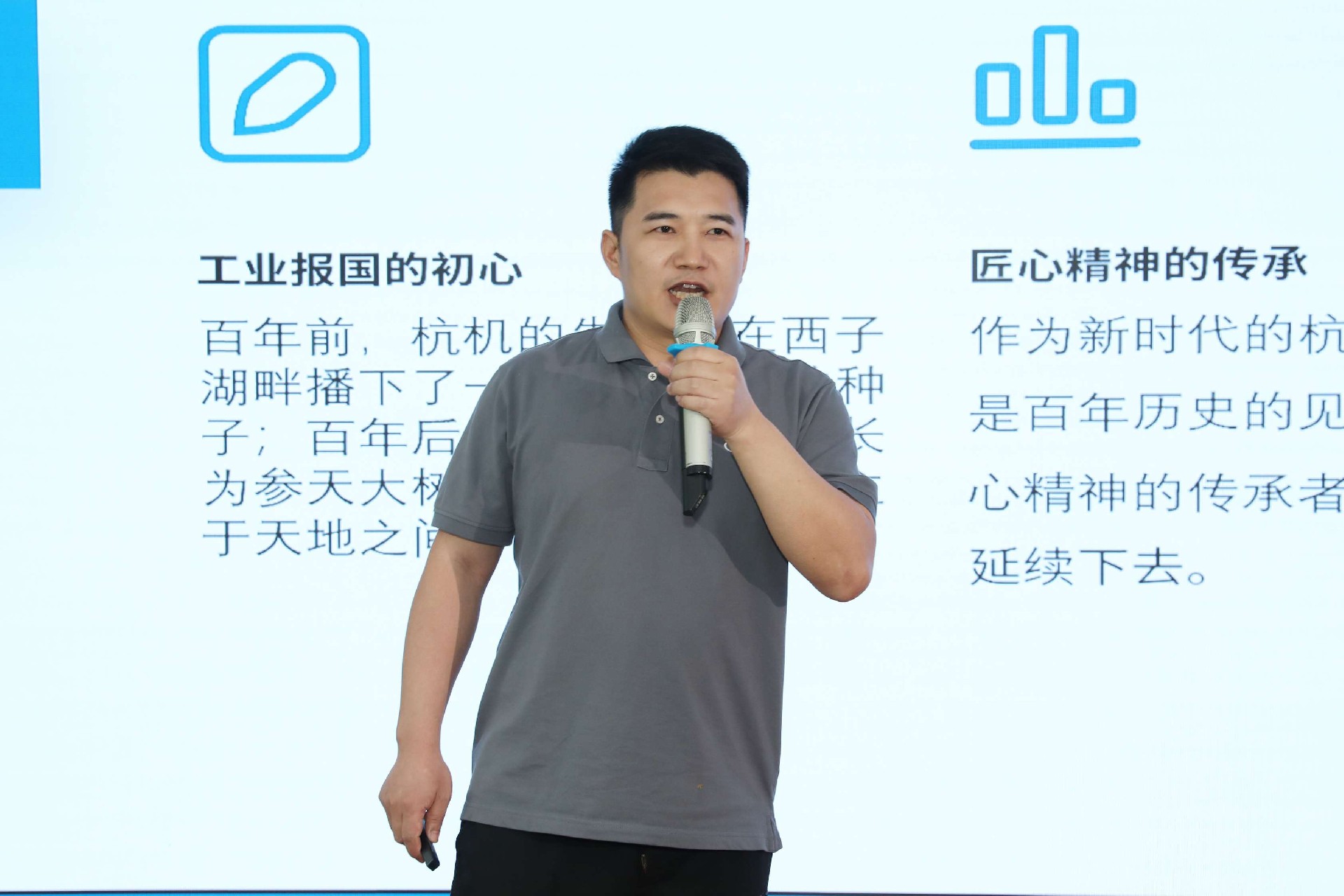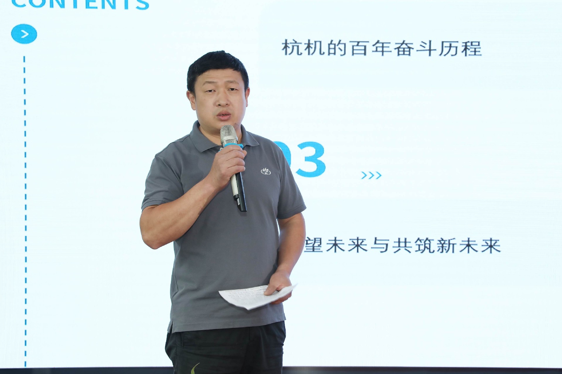 決賽現(xiàn)場(chǎng),16名來(lái)自不同崗位的參賽選手依次登臺(tái)。他們中既有扎根車(chē)間三十載的老技工,也有青年研發(fā)工程師,更有新入職就感受到滿(mǎn)滿(mǎn)杭機(jī)力量的新員工。演講內(nèi)容緊扣“匠心傳承”“智造突圍”“黨員先鋒”等關(guān)鍵詞,配合多媒體視聽(tīng)呈現(xiàn),引發(fā)陣陣掌聲。